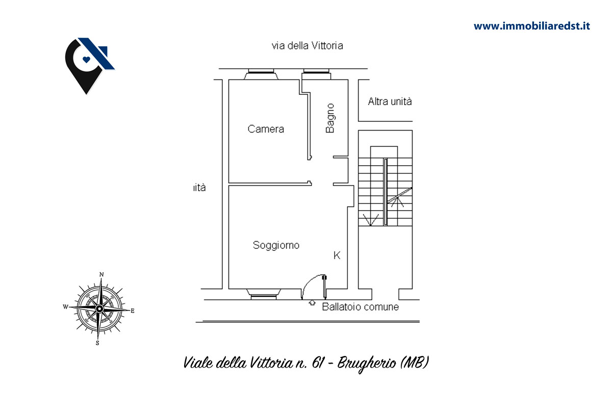 Appartamento posto al primo piano in complesso condominiale senza ascensore e servizio di pulizia scale.
