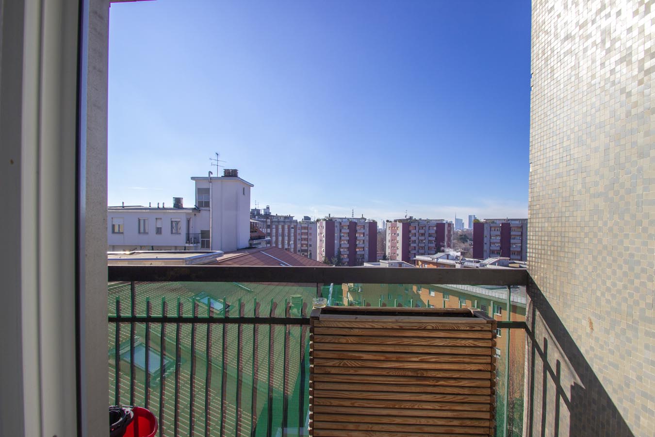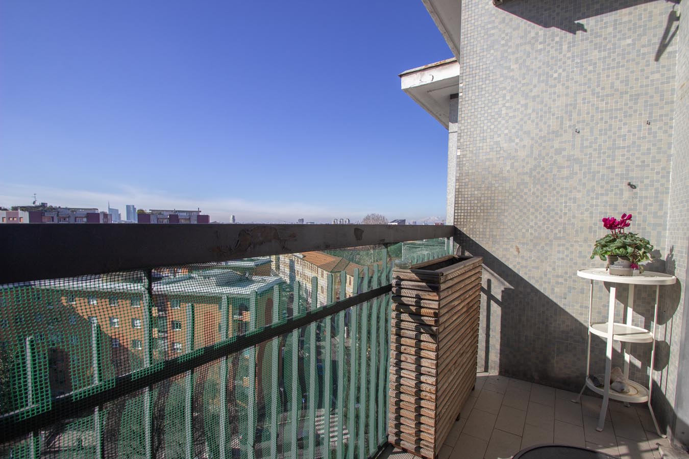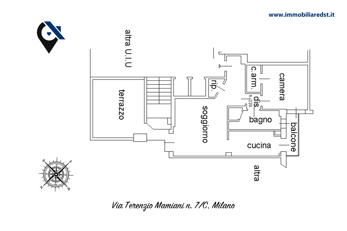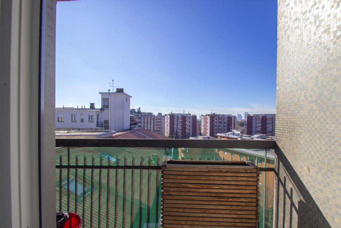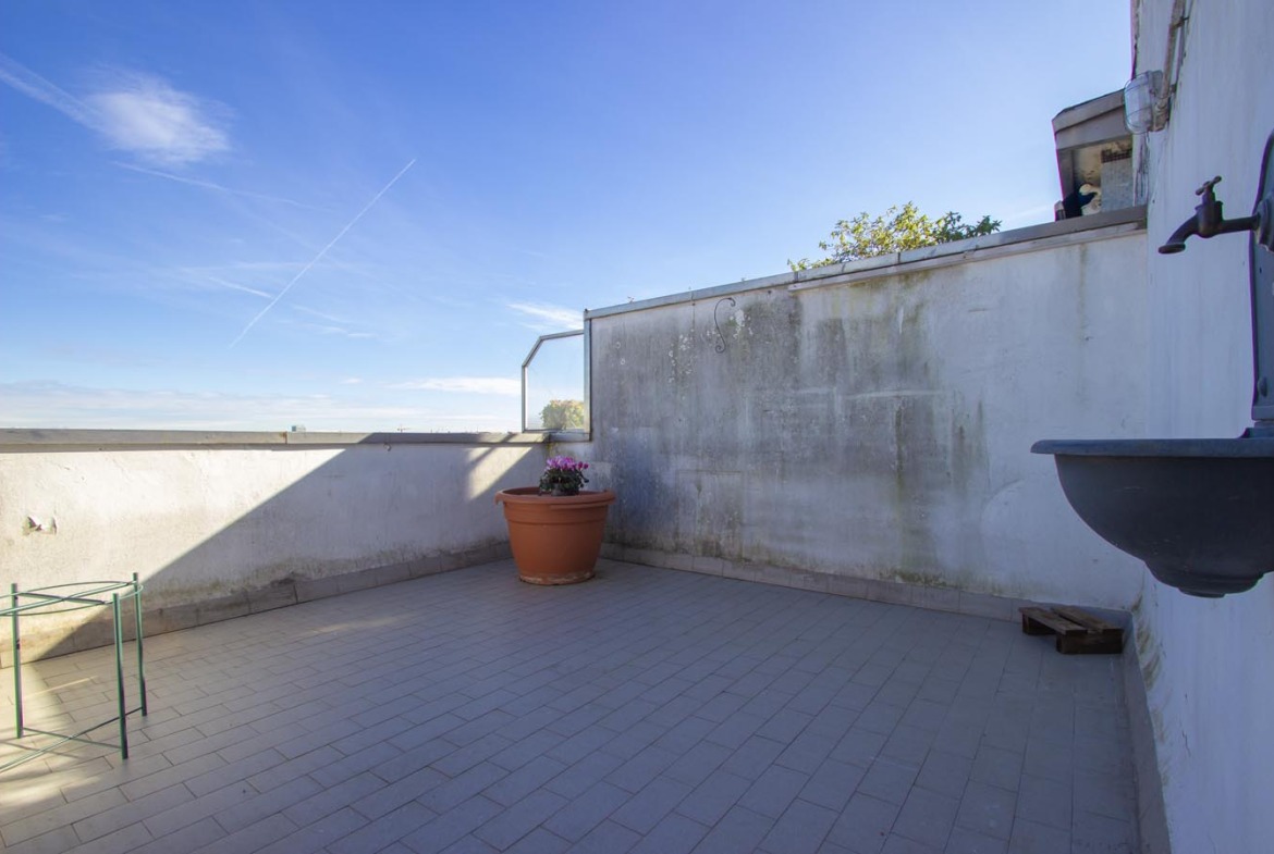 La soluzione proposta si compone di ingresso, soggiorno con accesso all’ampio terrazzo, cucina separata con balcone, camera matrimoniale, ripostiglio e servizio finestrato.