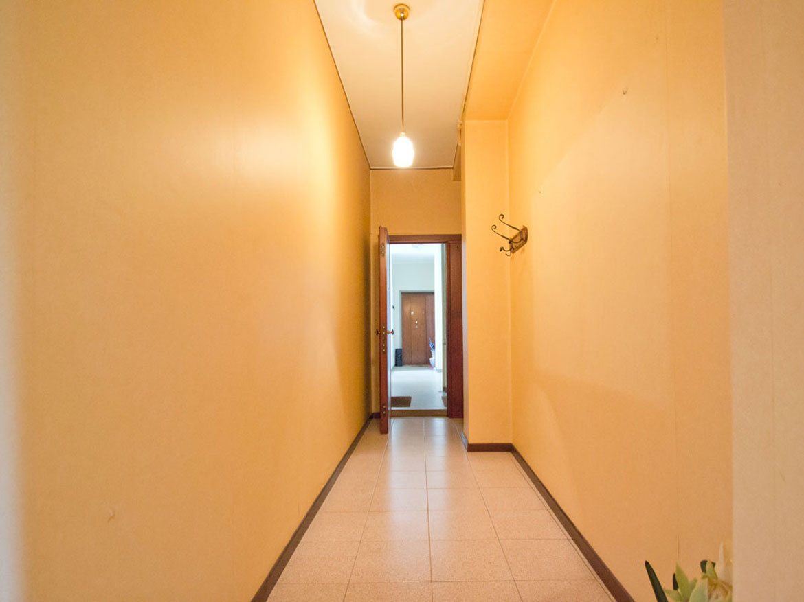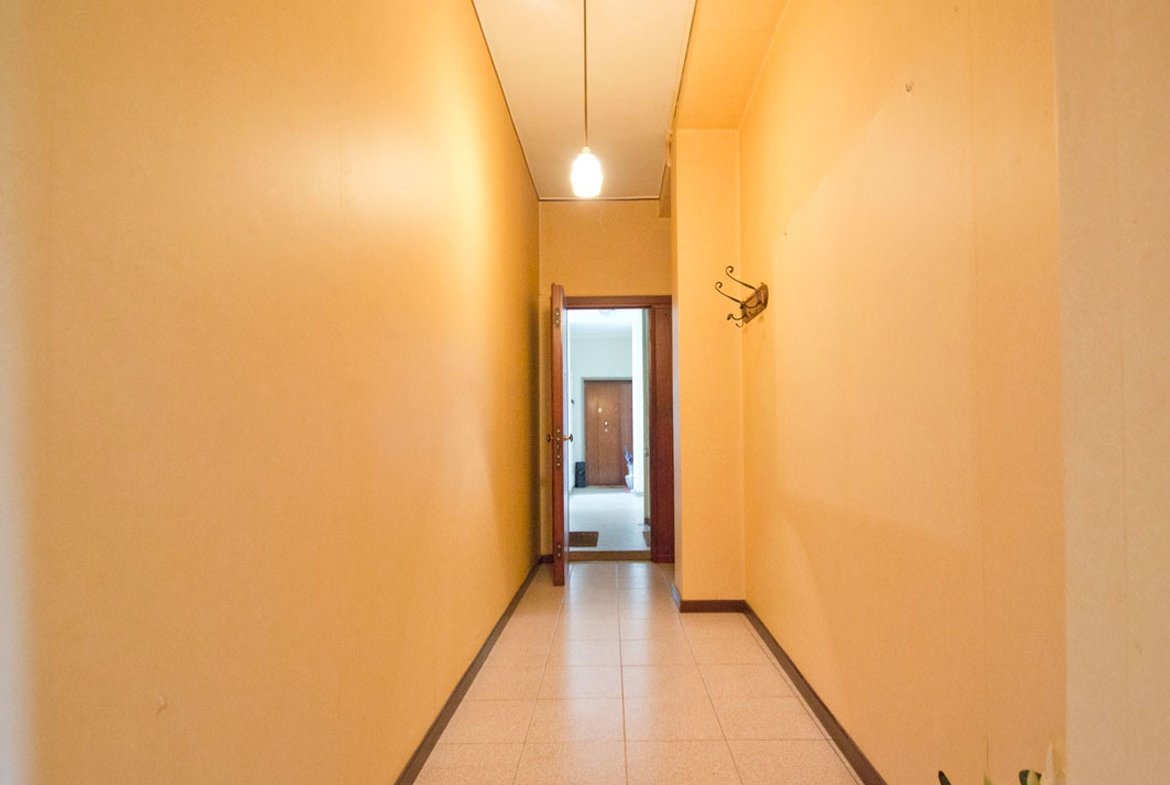 Soluzione in discrete condizioni generali, con doppia esposizione angolare, composto da ingresso, ampio disimpegno facilmente attrezzabile con armadiature a muro utili come ripostigli, soggiorno, cucina abitabile con accesso al piccolo balcone, camera matrimoniale e servizio finestrato con vasca. Completa la proprietà una cantina al piano interrato.