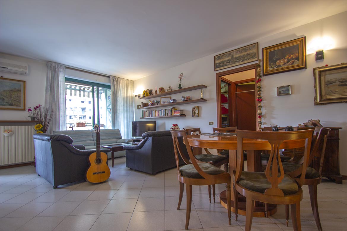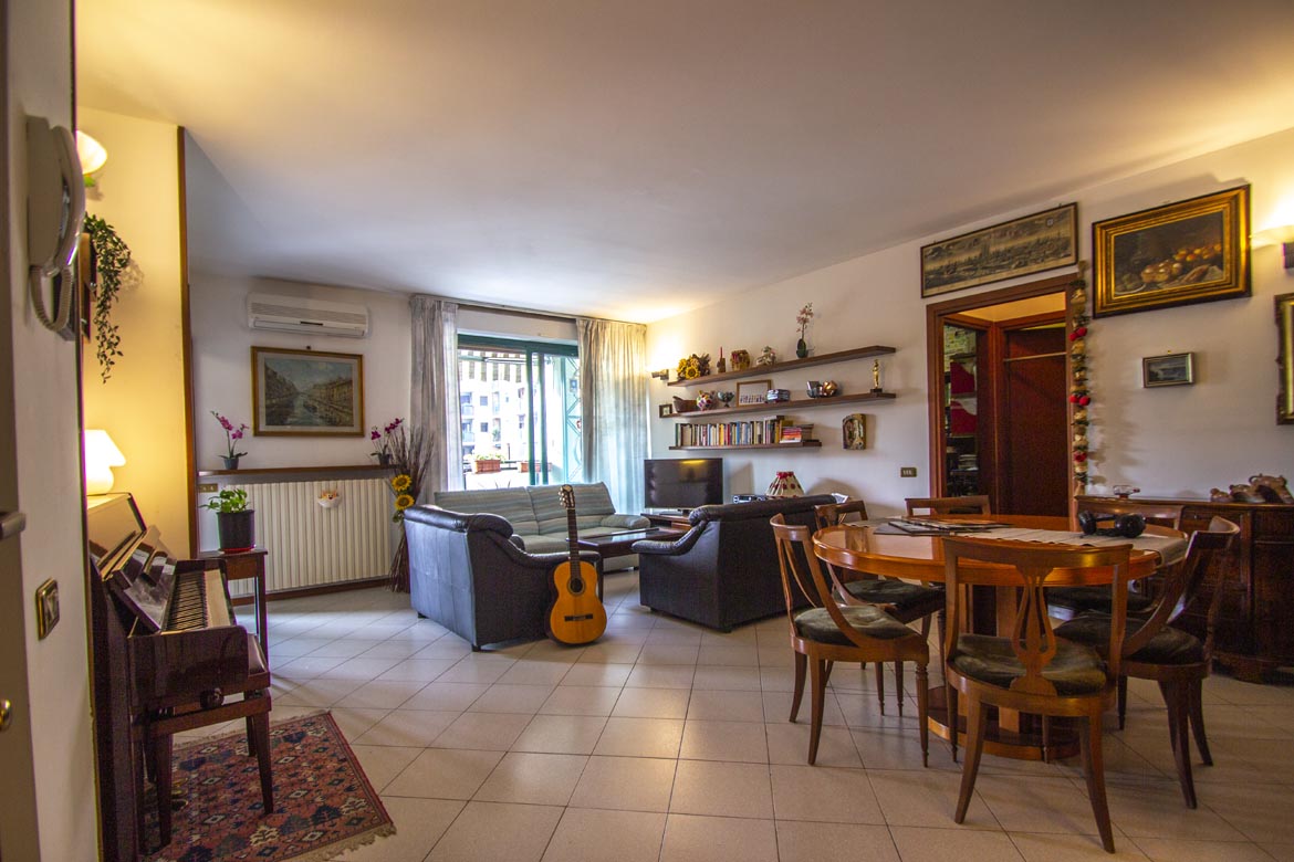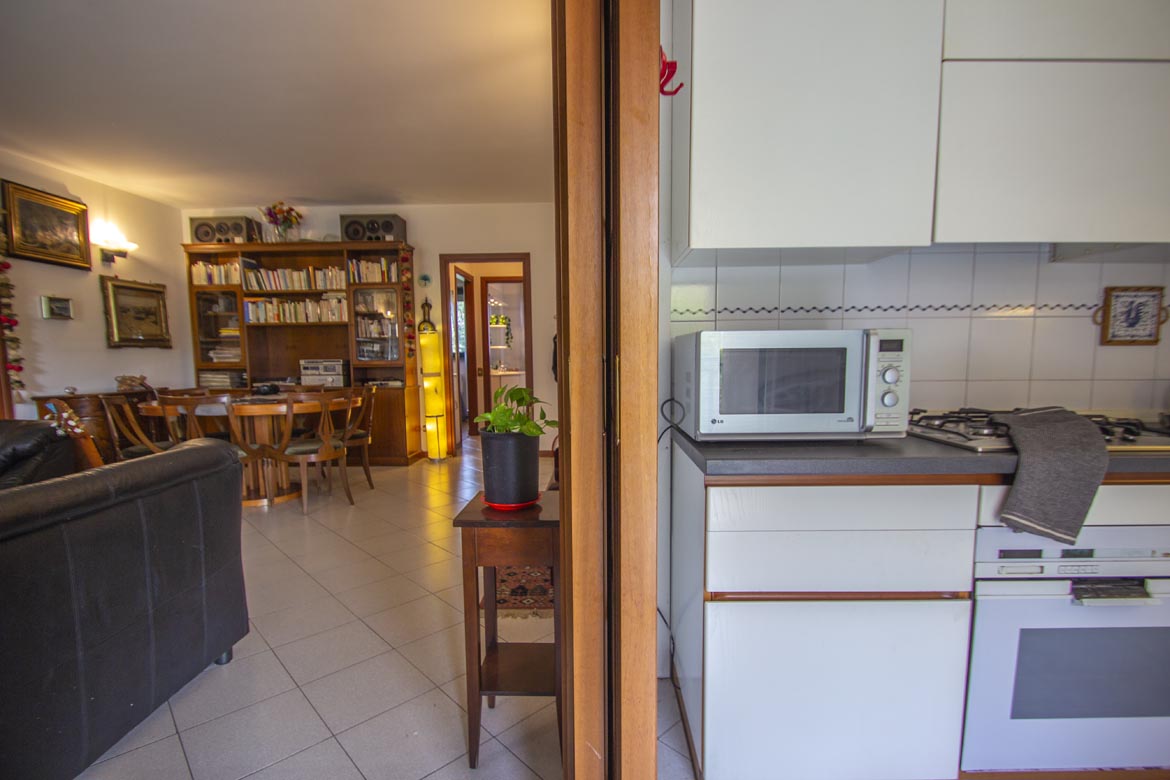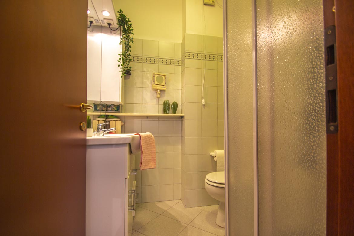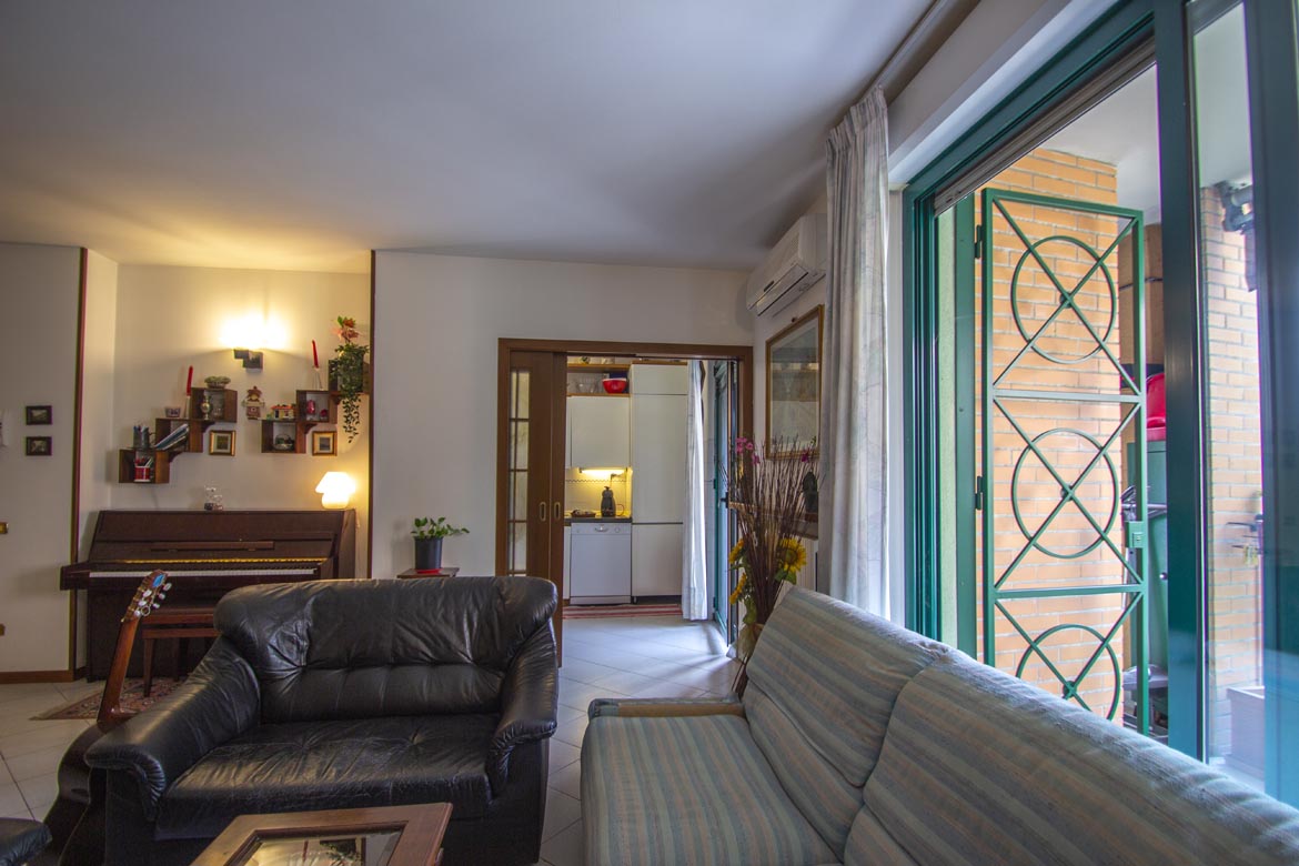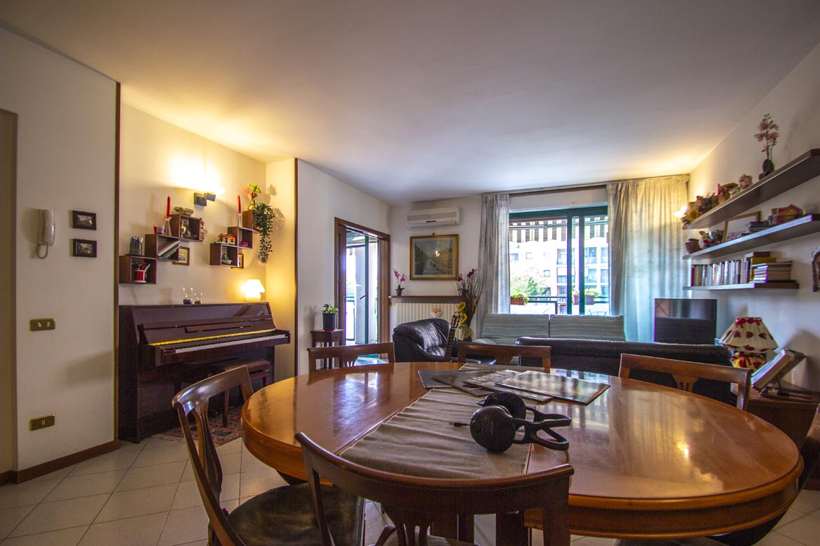 Trilocale di circa 90m in buone condizioni generali posto al primo piano in stabile con ascensore e servizio di pulizia scale. Composto da ingresso diretto sulla zona giorno, cucina abitabile con accesso al terrazzo, disimpegno con ripostiglio, camera matrimoniale e servizio finestrato. Secondo disimpegno con ripostiglio, seconda camera e servizio con aerazione forzata. Completano la proprietà una cantina ed un grande box auto al piano interrato.