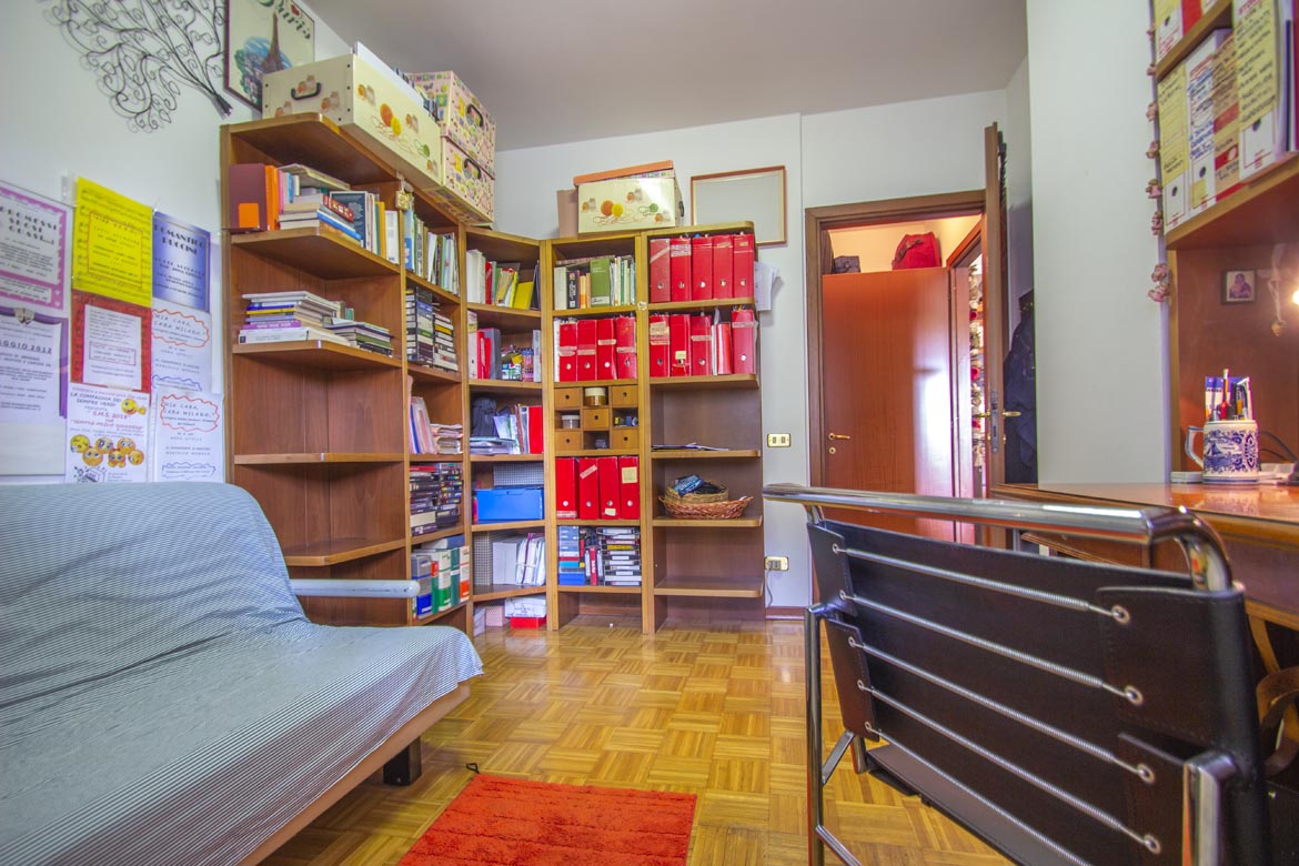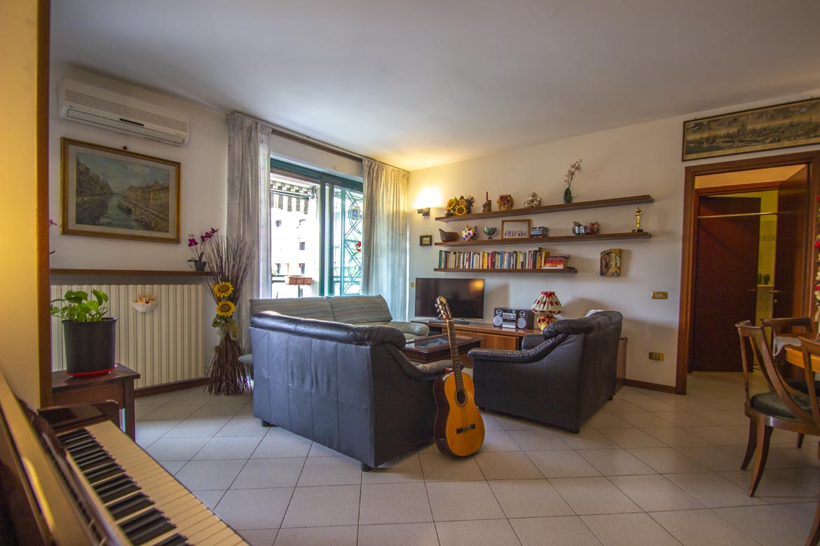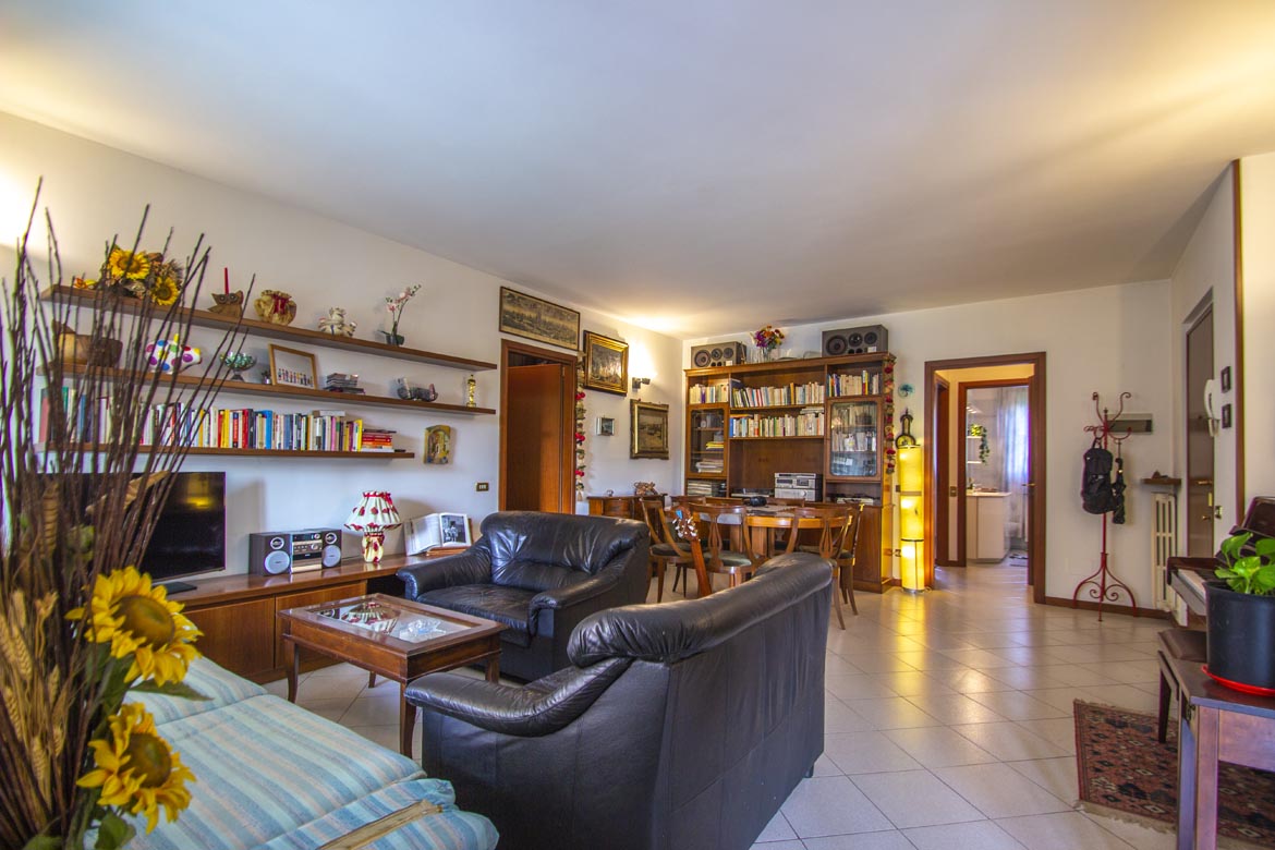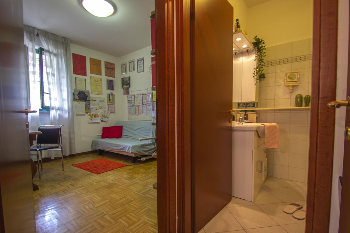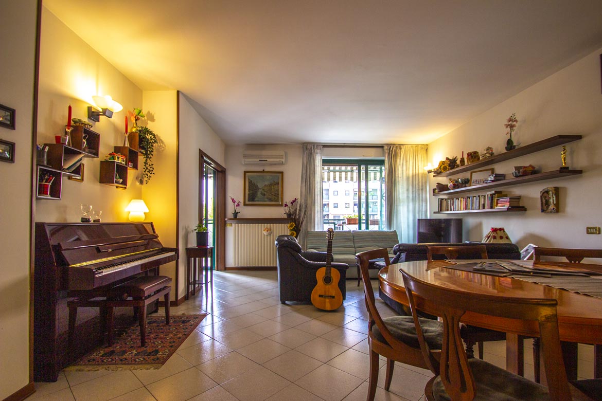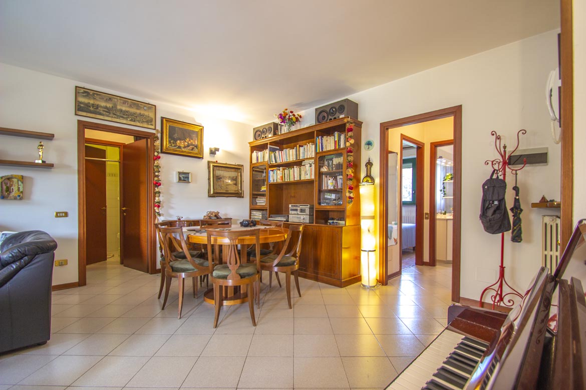 Trilocale di circa 90m in buone condizioni generali posto al primo piano in stabile con ascensore e servizio di pulizia scale. Composto da ingresso diretto sulla zona giorno, cucina abitabile con accesso al terrazzo, disimpegno con ripostiglio, camera matrimoniale e servizio finestrato. Secondo disimpegno con ripostiglio, seconda camera e servizio con aerazione forzata. Completano la proprietà una cantina ed un grande box auto al piano interrato.