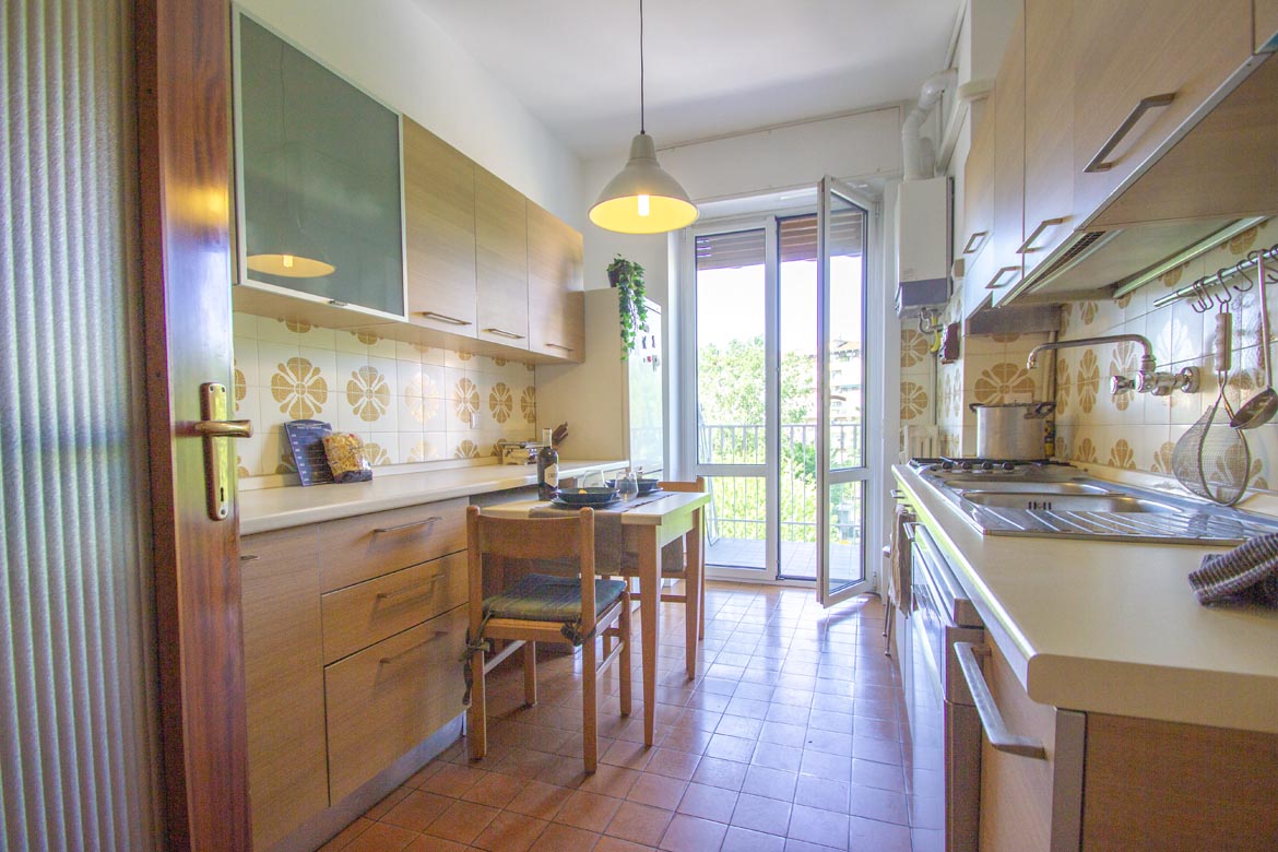 Composto da ingresso con disimpegno, soggiorno e cucina abitabile con accesso al terrazzino, tre camere da letto, ripostiglio e doppi servizi finestrati.