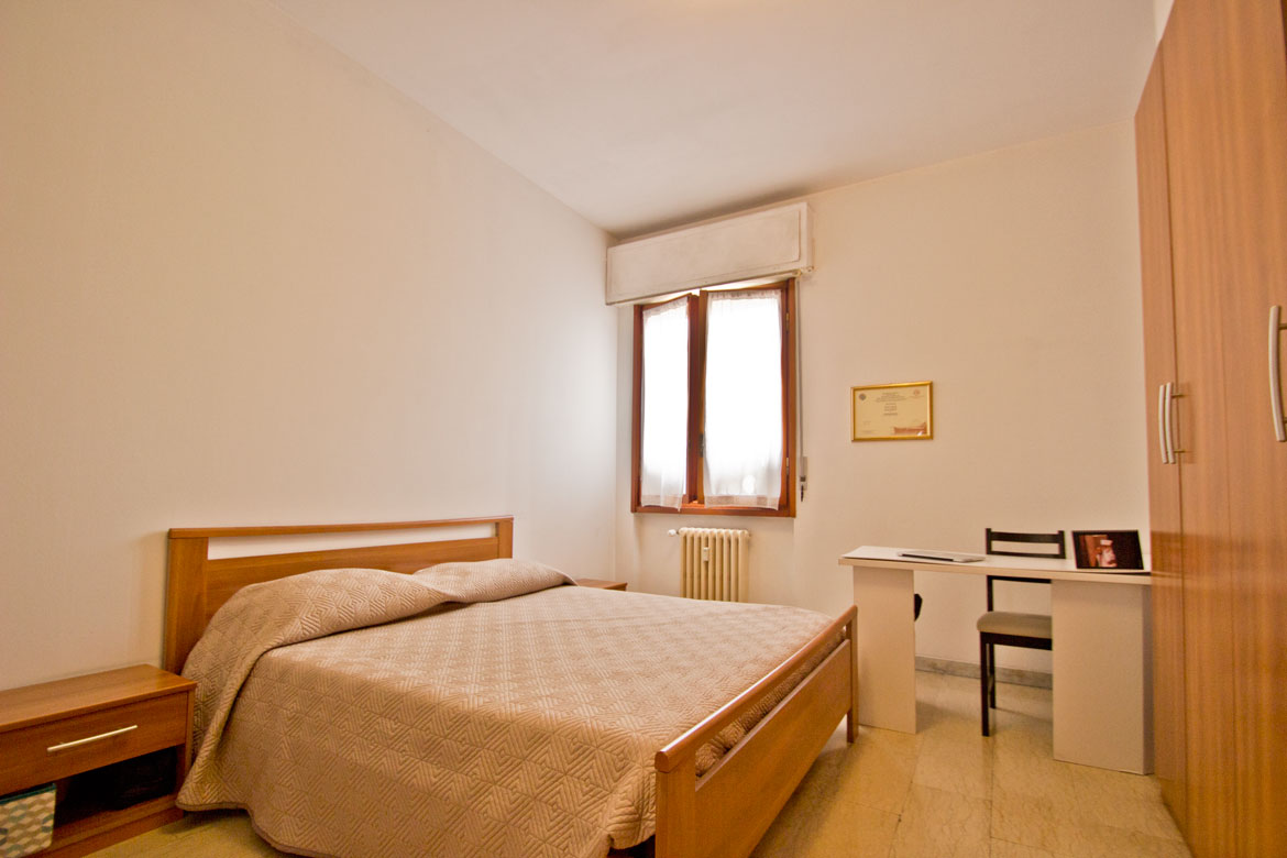 Zona notte con pavimentazione in marmo, cucina e servizio rifinito con pavimentazione e rivestimenti in grès porcellanato. Serramenti in legno.